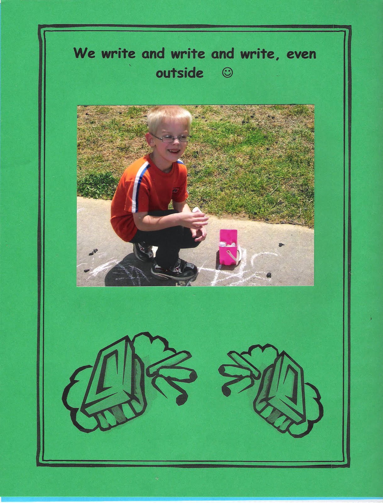 Kraig writes with chalk at home all the time....so I'm sure he enjoyed this at school!